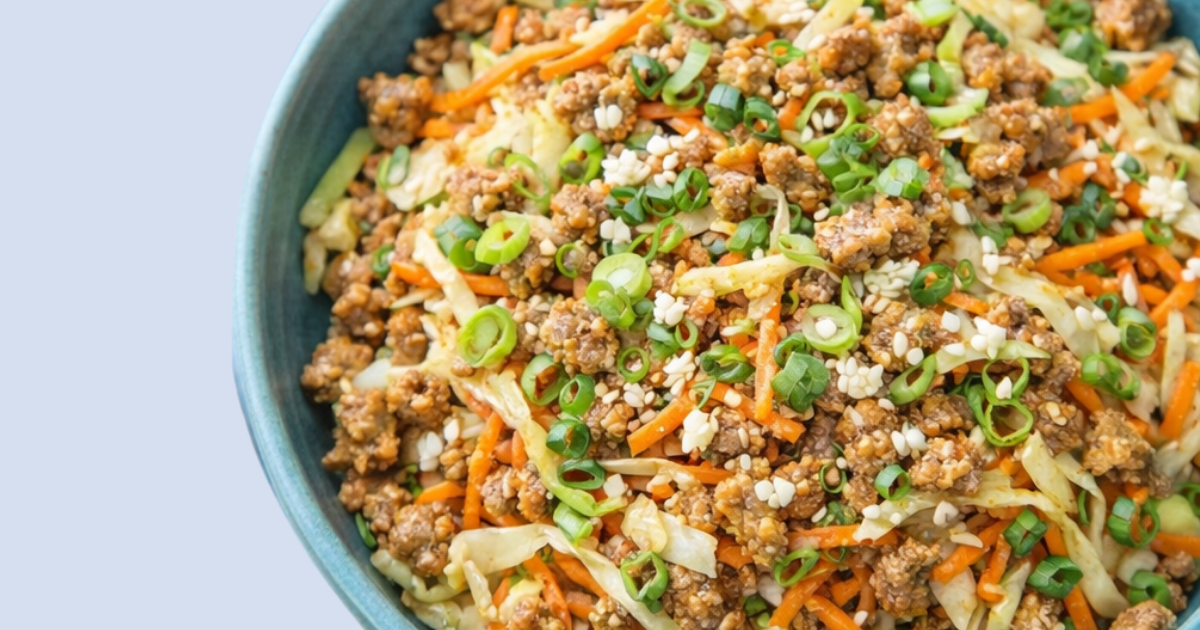 This keto egg roll in a bowl is made with ground meat, cabbage, and seasonings for a low carb dinner that is easy to make and easy to repeat.